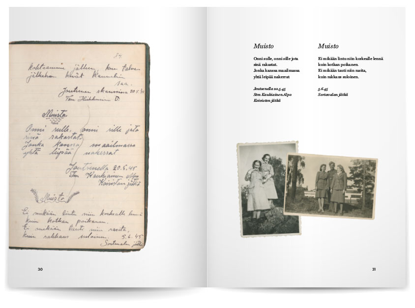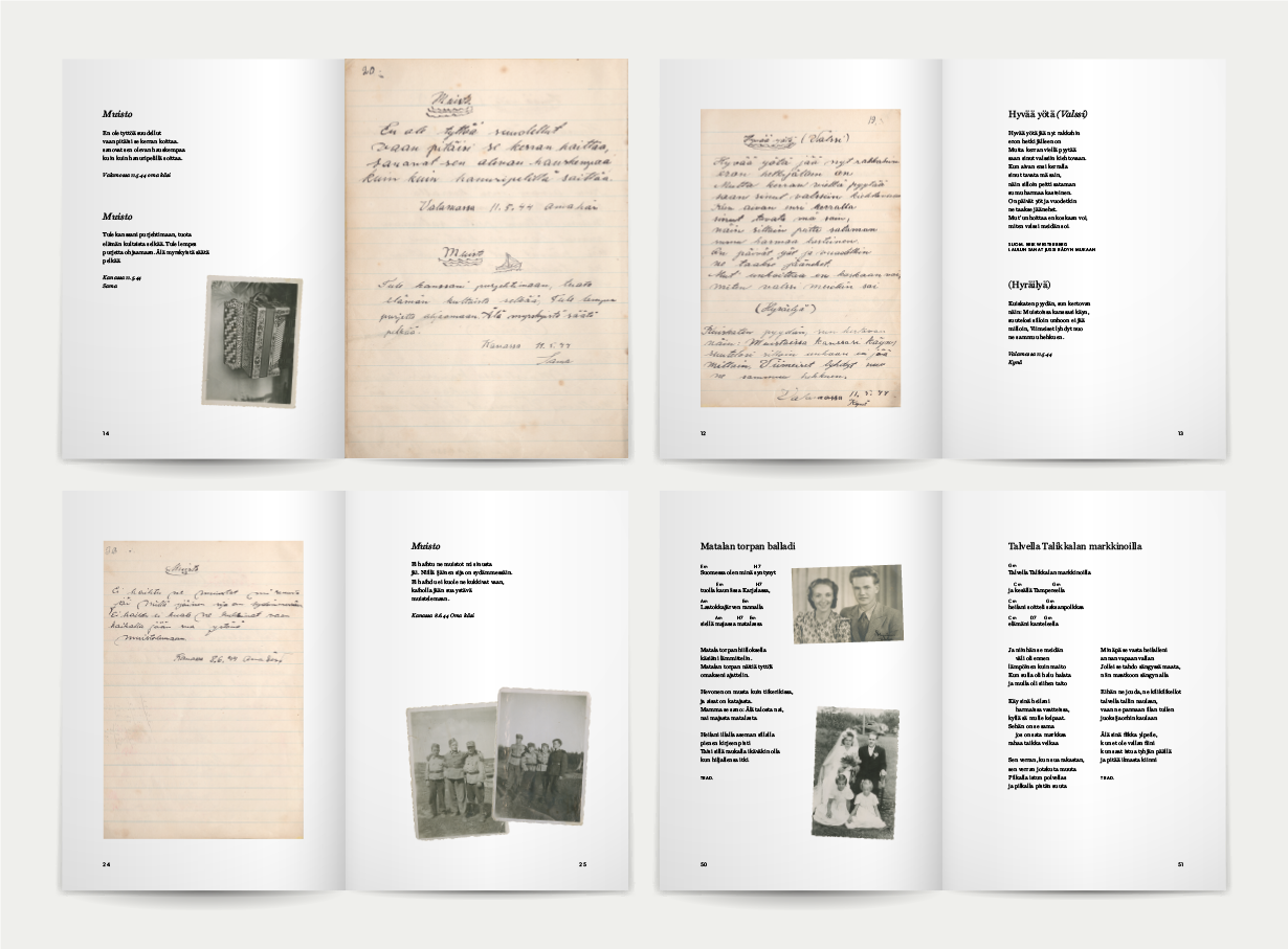 Näyttelyn myyntituotteeksi suunniteltiin muisto- ja lauluvihko, joka sai inspiraationsa aidoista sota-ajan värssykirjoista.